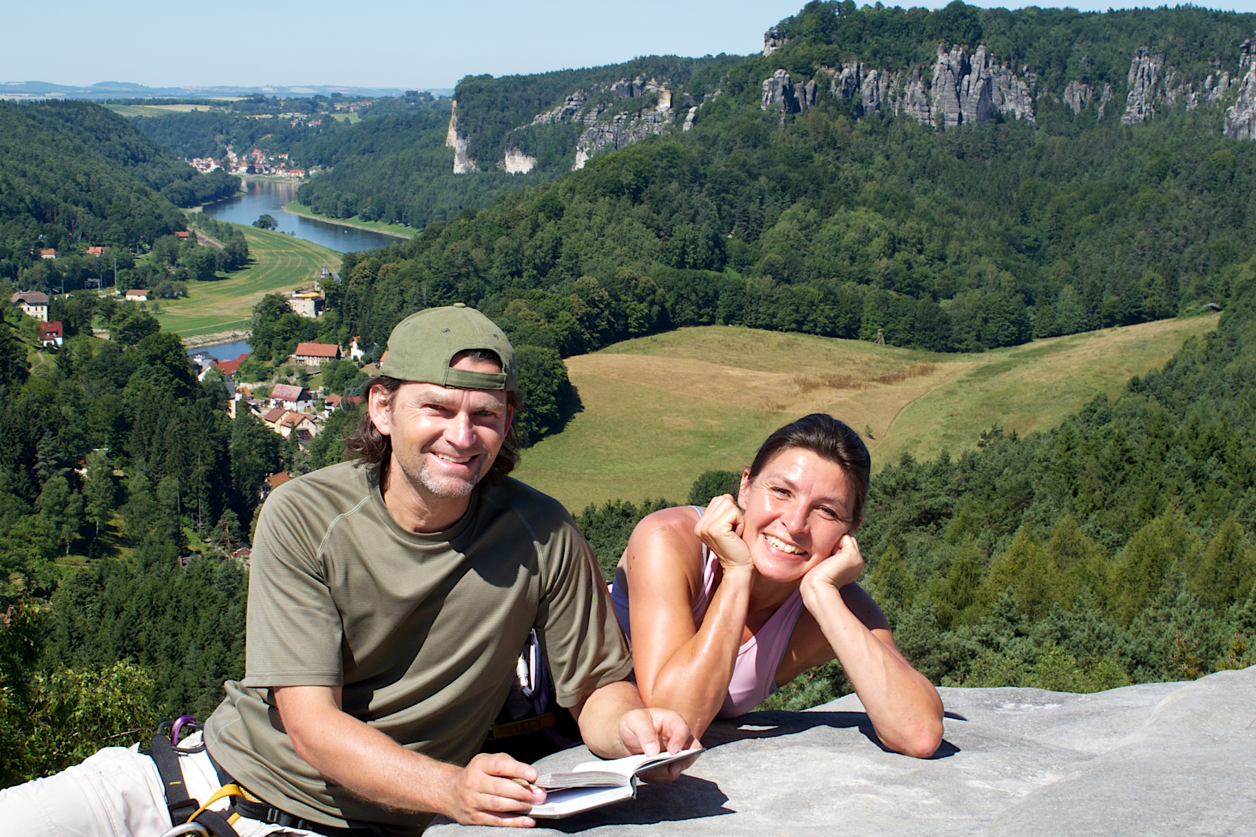 Postkartenidylle pur. Es gibt Leute, die haben behauptet, die Sächsische Schweiz wäre das schönste außeralpine Klettergebiet Europas. Und das waren gar keine Sachsen, die das meinten. Also ich kann dem nur zustimmen.