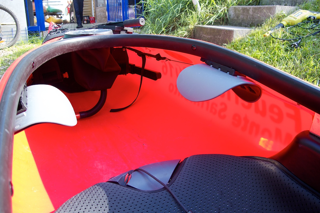 Die neuen Schenkelstützen in meinem Kajak. Wie nützlich diese relativ kleine Veränderung ist, weiß man erst, wenn man mal in richtig rauer See so gar keine Lust auf Kentern hatte!