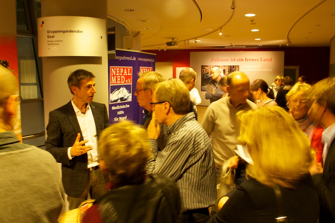 Natürlich sollte an diesem Abend auch Geld für Nepal gesammelt werden. Und gerade in dieser Hinsicht war der gemeinsame Vortragsnachmittag mit Nepalmed ganz besonders erfolgreich. Zehn Prozent der Einnahmen aus meinen beiden Vorträgen werde ich an Nepalmed überweisen. Dazu kommen dann noch die Einnahmen aus Verkäufen am Stand von Nepalmed und Spenden, so dass deutlich mehr als 1000 Euro für Nepal zusammengekommen sind. Vielen Dank also an dieser Stelle an das gut aufgelegte und sehr spendenfreudige Publikum.
