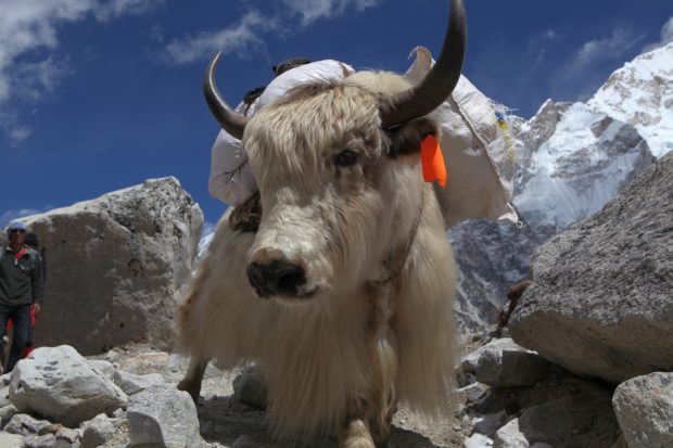 Auf dem Abstieg vom Cho La zur 4900 Meter hoch gelegenen Alm Dzongla gehen wir auf die Nordwand der unvergleichlichen Ama Dablam zu. Und dann noch bei bestem Fotolicht 🙂