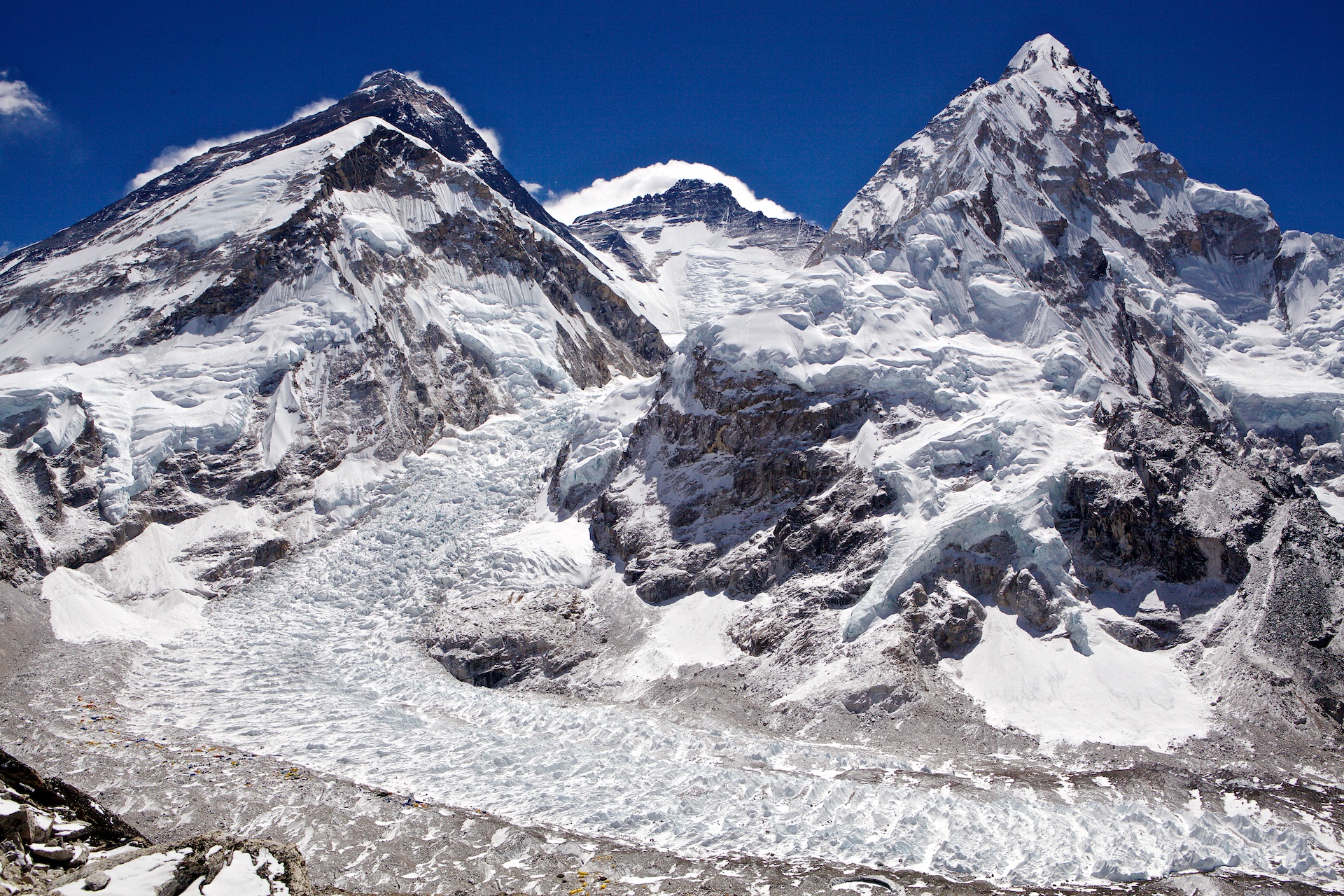 Hier im Bild das eigentliche Ziel Wilsons, die in Nepal gelegene damals noch völlig unerforschte Südwestseite des Everest. Besonders interessant an dieser Tatsache ist, dass der große Georg Mallory bei einer Erkundungstour von Tibet aus im Jahr 1921 direkt unter der Nordwand des Everest auf den Lho La-Pass (hier ganz links noch auf dem Foto sichtbar) gestiegen war und von dort aus, als vermutlich erster Mensch überhaupt, einen Blick auf den Khumbu-Eisfall und das darüber liegende Tal des Schweigens werfen konnte. Dieser Anblick ließ ihn zu dem Ergebnis kommen, dass ein Aufstieg auf dieser Seite des Berges völlig undenkbar sei. Scheinbar kannte Wilson diese Aussage Mallorys nicht, oder aber sie hat ihn gerade dazu animiert, über die Südwestseite des Everest aufsteigen zu wollen.