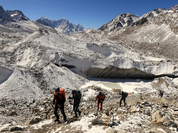 Auch wenn es auf den ersten Blick hinunter auf den Ngozumba-Gletscher nicht gleich so aussieht: Unter dem Geröll ist tatsächlich EIS!
