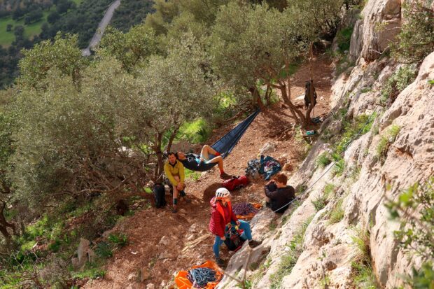 Dieses Bild zeigt exemplarisch die Situation am Wandfuß. Wird nicht gerade hart geklettert, ist chillen angesagt.