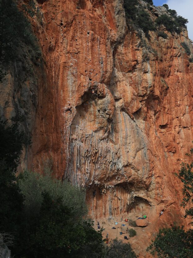 Über Leonidio ragt also eine imposante, viele Kilometer breite, um die 200 m hohe Wand empor, welche perfektes Gestein bietet. Man sollte also meinen, dass es hier unzählige, großartige Mehrseillängentouren gibt. Aber weit gefehlt. Und das ist tatsächlich schade. Nur einige wenige Routen ziehen sich durch die gesamte Wandhöhe. Die Masse der Touren befinden sich an der Basis der Wände und sind nur zwischen 20 und 40 m lang. Doch ihre Anzahl scheint unendlich und ständig kommen neue Sektoren und Routen dazu.