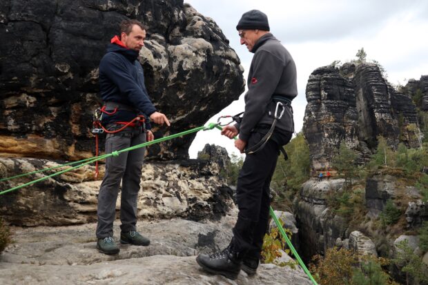 Vielleicht wird das Sächsische Bergsteigen eben doch nicht so bald aussterben. Auch wenn im Elbsandstein die alten Traditionen nach wie vor sehr hochgehalten werden und das selbst abzusichernde Klettern eine ernste Sache geblieben ist. Und deshalb ist es eine gute Idee, sich die überlebensnotwendigen Fähigkeiten bei der Absicherung durch Schlingen gründlich anzueignen.