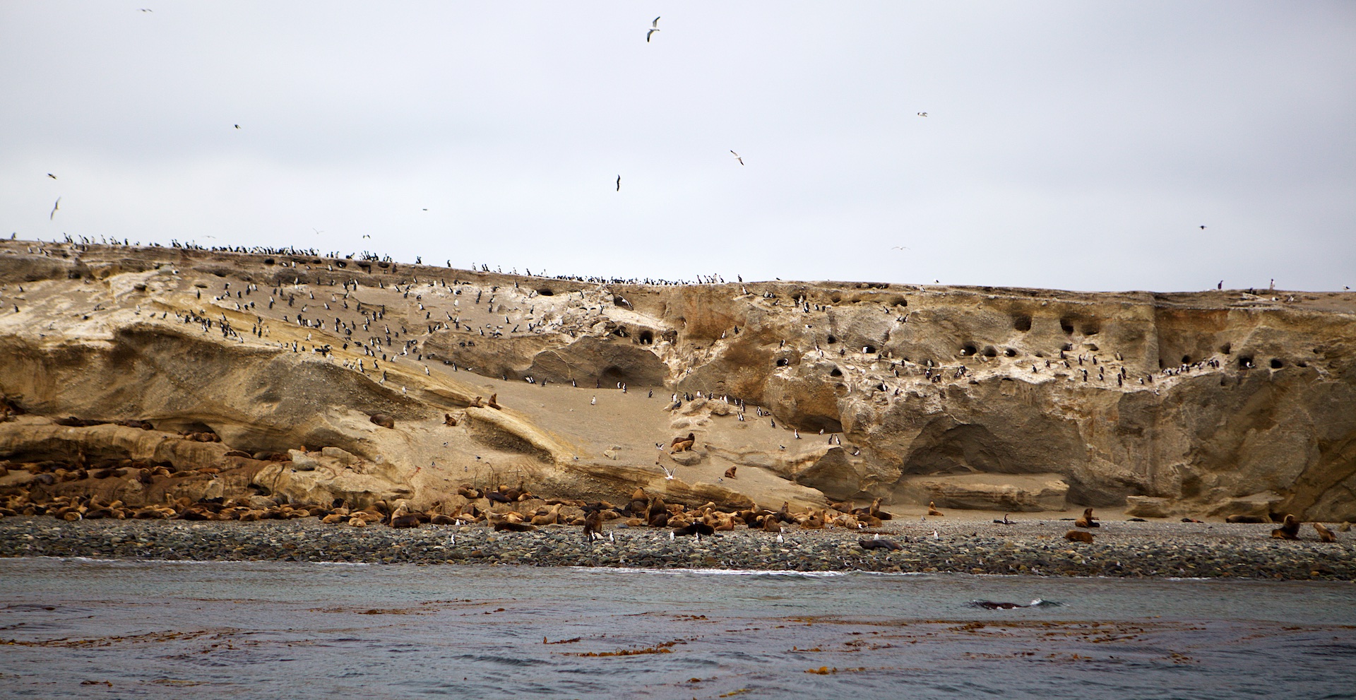 Eine große Pinguinkolonie auf Feuerland. Sie vertragen sich gut mit Walrössern. Dieses Bild stammt von meiner Expedition zum Monte Sarmiento.