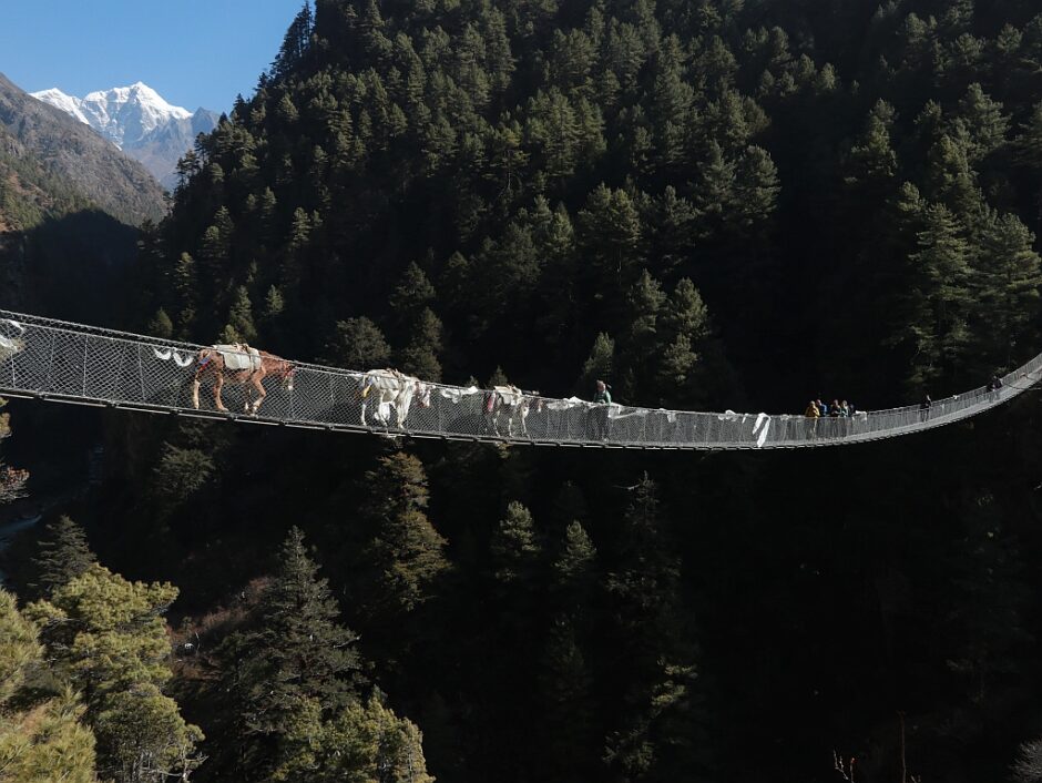 Doch Namche liegt am Schnittpunkt dreier bedeutender Wege: Da ist einmal der alte Handelsweg über den Pass Nangpa nach Tibet. Zweitens der Weg hinauf zum Fuss des Everest, der aber erst seit höchstens 60 Jahren eine Bedeutung bekommen hat. Der dritte sehr wichtige Weg ist natürlich der hinunter ins Tal in Richtung Salerie und Jiri.