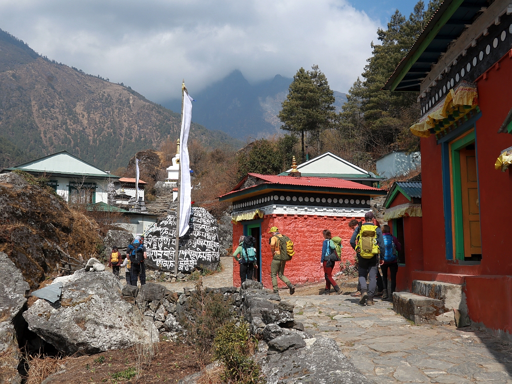 600 Höhenmeter waren zu überwinden. Eigentlich ist das zu viel für einen Tag, aber leider nicht anders machbar, da es zwischen Monju und Namche keine Übernachtungsmöglichkeit gibt. Wir werden deshalb morgen rasten und uns bei einem Spaziergang in die oberhalb von Namche gelegenden Dörfer Khumjung und Khunde in aller Ruhe akklimatisieren.