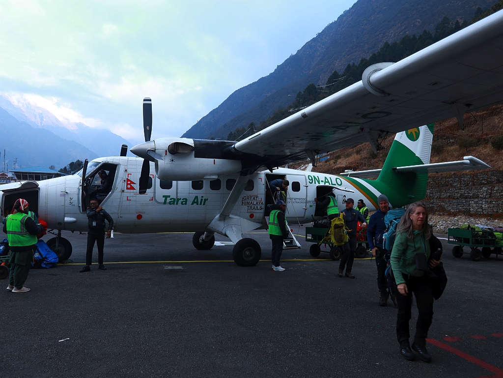 Der Flug nach Lukla versetzt mich regelmäßig ein wenig in Aufregung. Denn dieser Flug ist nach wie vor ein Sichtflug. Und wenn die Piloten nichts sehen, dann können sie auch nicht fliegen. Das passiert schon ab und zu einmal und bringt dann unseren schönen Zeitplan gehörig durch einander.