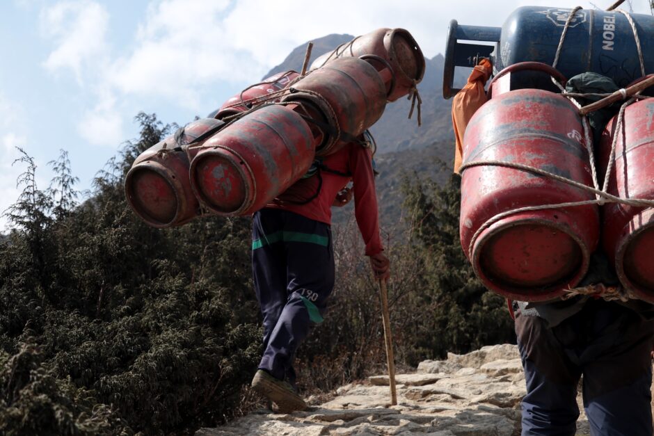 Allein eine solche Last auszutarieren und im Gleichgewicht zu halten, ist auf den oft rutschigen und immer sehr anspruchsvollen Bergpfaden eine ungeheure Herausforderung für die Lastenträger.