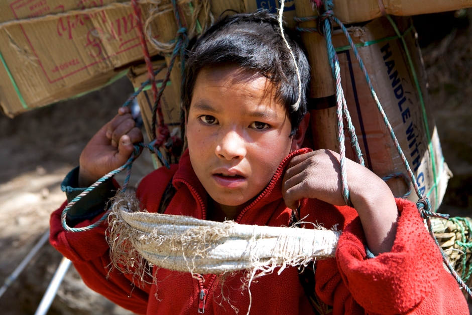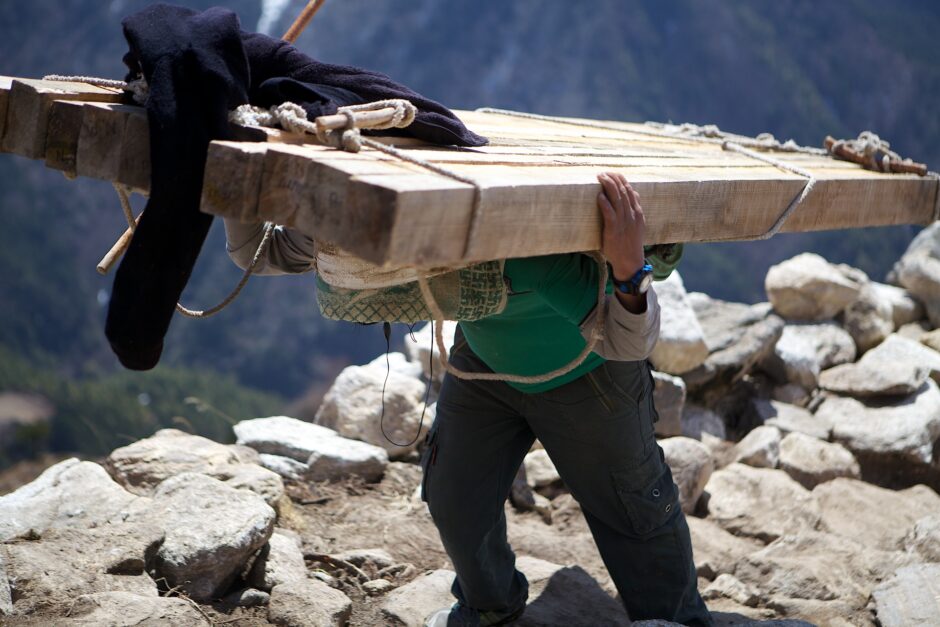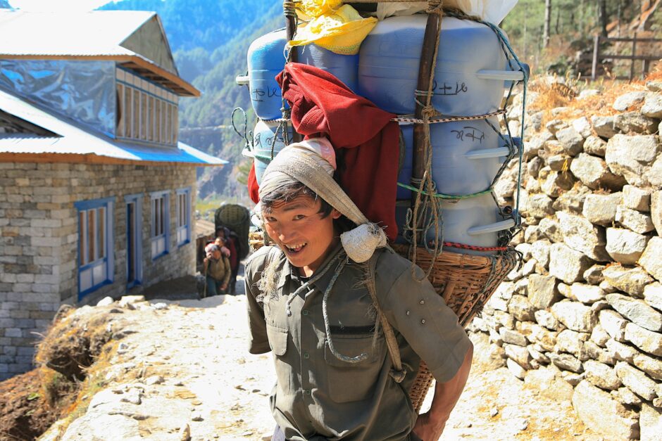 Nepal ist ein Land, in welchem die Bewohner in weiten Teilen auch im 21. Jahrhundert noch ganz ohne Straßen auskommen müssen. Dafür durchzieht wie ein pulsierendes Gefäßsystem ein Netz von Fußpfaden das riesige Gebirge des Himalayas. Alle nur erdenklichen Lasten müssen auf ihnen durch die Berge geschleppt werden. Und das passiert zum großen Teil bis zum heutigen Tag auf den Rücken von Menschen.