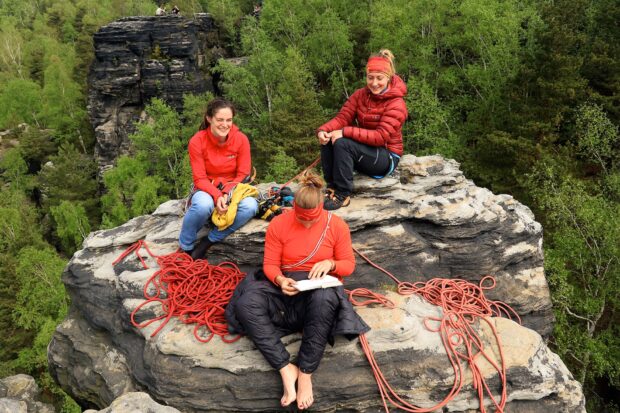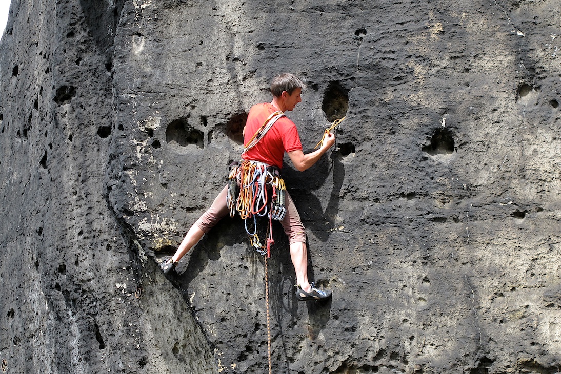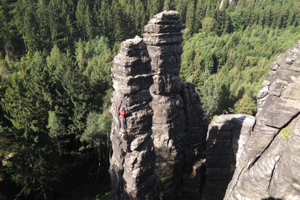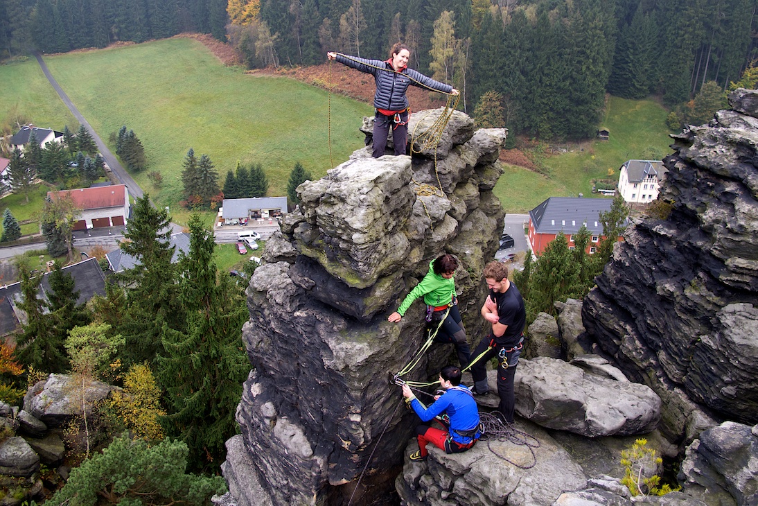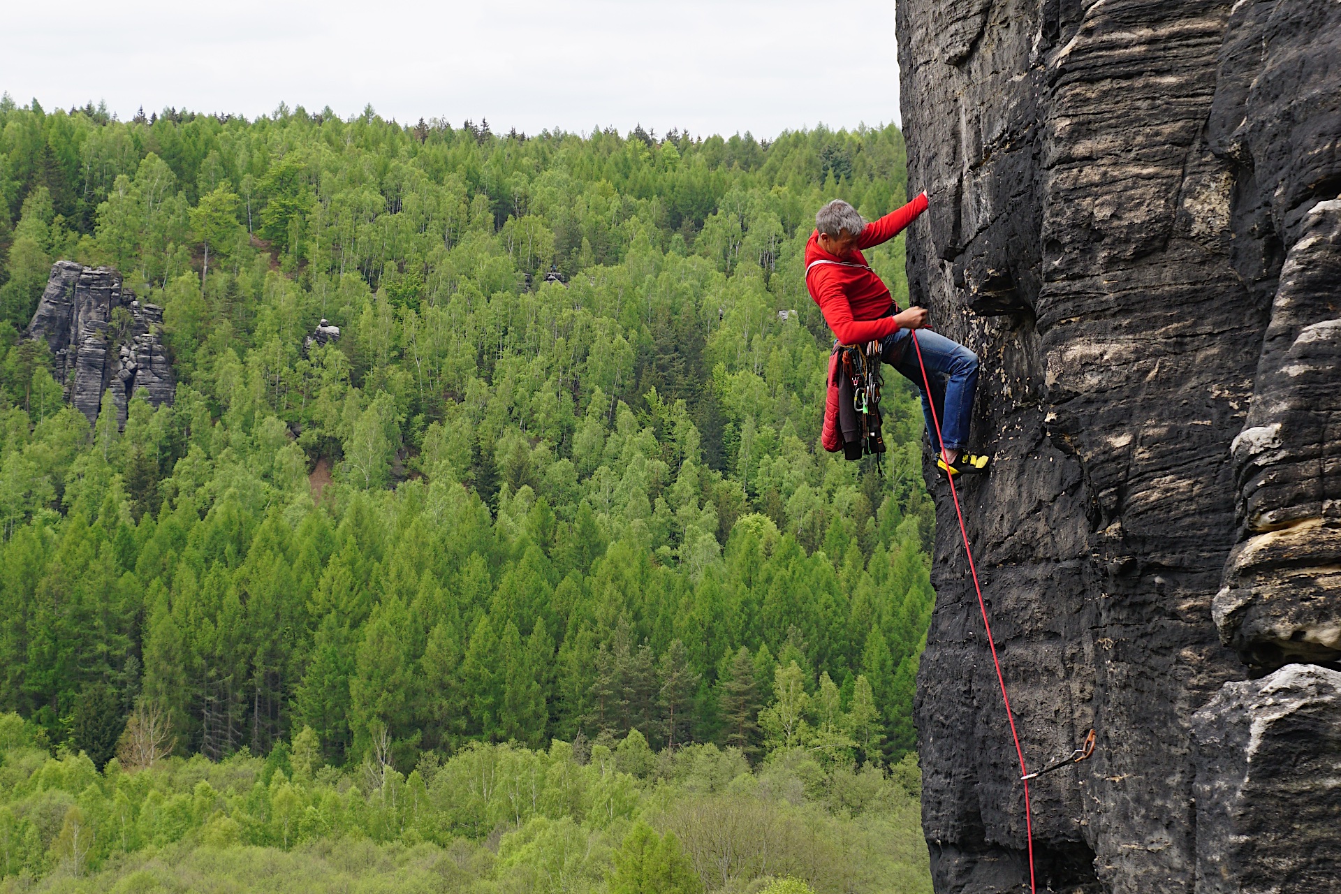 Klettern in Sachsen ist etwas ganz besonderes. Die weltweit bekannten Sandsteinfelsen der Sächsischen Schweiz sind die Wiege des Freikletterns. Die Routen werden größtenteils selbst abgesichert. Deshalb ist die Technik des Schlingenlegens so wichtig, um auch im Vorstieg unterwegs sein zu können. Wer einmal in der traumhaften Umgebung der Sächsischen Schweiz geklettert ist, wird immer wieder hierher zurückkehren.
